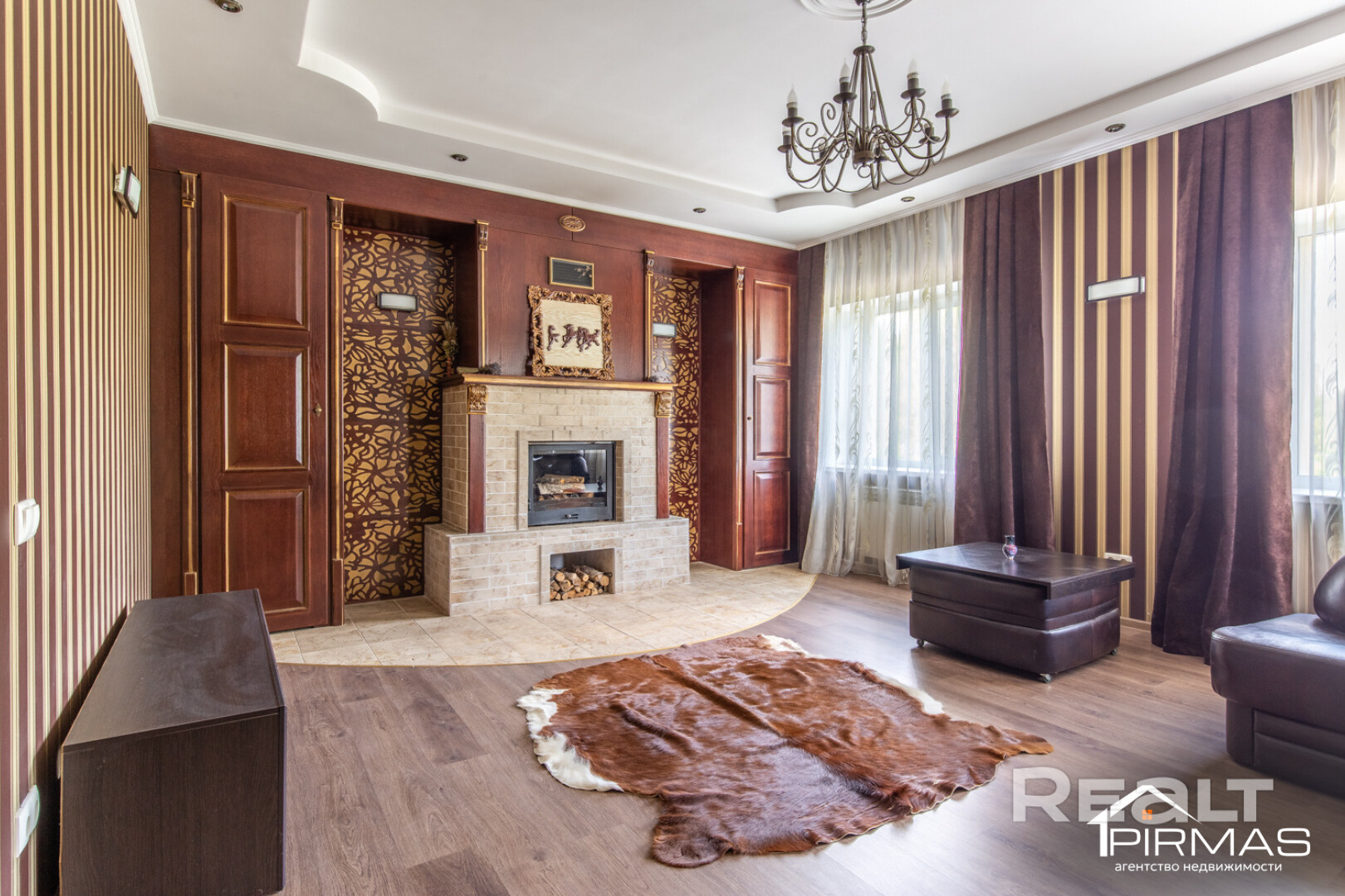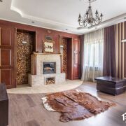 - Межкомнатные двери, проёмы, лестницы, зона камина отделаны массивом, шпонированным дубом.