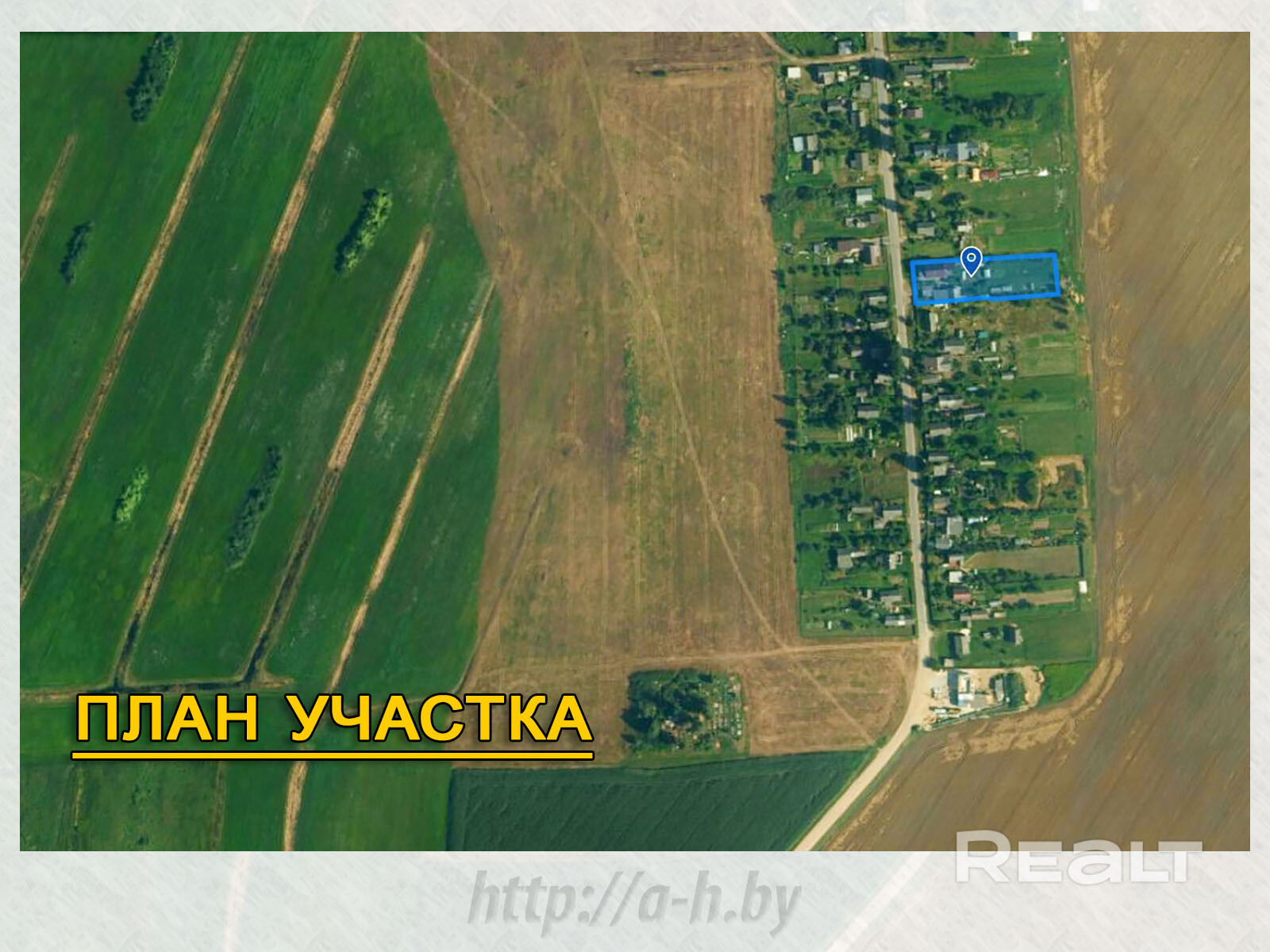 В собственности - половина ровного и обработанного участка на 24,99 сотки с плодоносящими деревьями и кустарниками, огороженного забором со всех сторон.