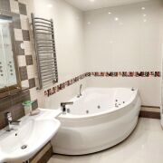 Дизайнерский ремонт с использованием качественных материалов. В комнатах на полу бамбуковый и дубовый паркет. Лестница из массива канадского дуба. В санузлах и рабочей зоне на кухне плитка с обогревом. Встроенная кухня и барная стойка с мраморными столешницами. Кухонная техника Siemens, холодильник Liebherr, посудомойка 60см. В санузлах сантехника Hansgrohe и BONETTI, джакузи, душевая кабина с парогенератором и гидромассажем. Зональная многоуравневая подсветка во всех комнатах. Взрослая спальная зона отделена от детской большим холом! Две гардеробных комнаты. Мебель и техника по договоренности. Три кондиционера - все обслужены.