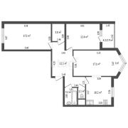 Общая площадь квартиры по СНБ составляет 79,1 м2, из которых 46,7 м2 занимают изолированные, просторные жилые комнаты и 3,0 м2 занимает кладовка.