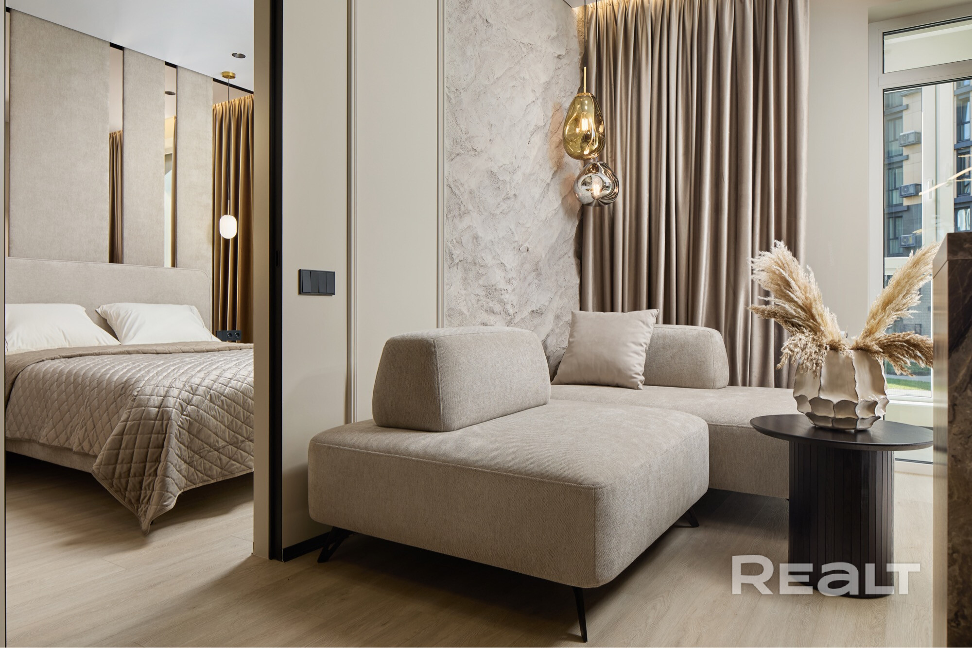 Новая квартира в центре Минска, в элитном ЖК Комфорт парк. Закрытая тихая территория. Современный ремонт, укомплектована бытовой техникой, никто не жил. Много мест хранения: гардеробные, шкафы на лоджии. Использовались дорогие материалы при ремонте, освещение.