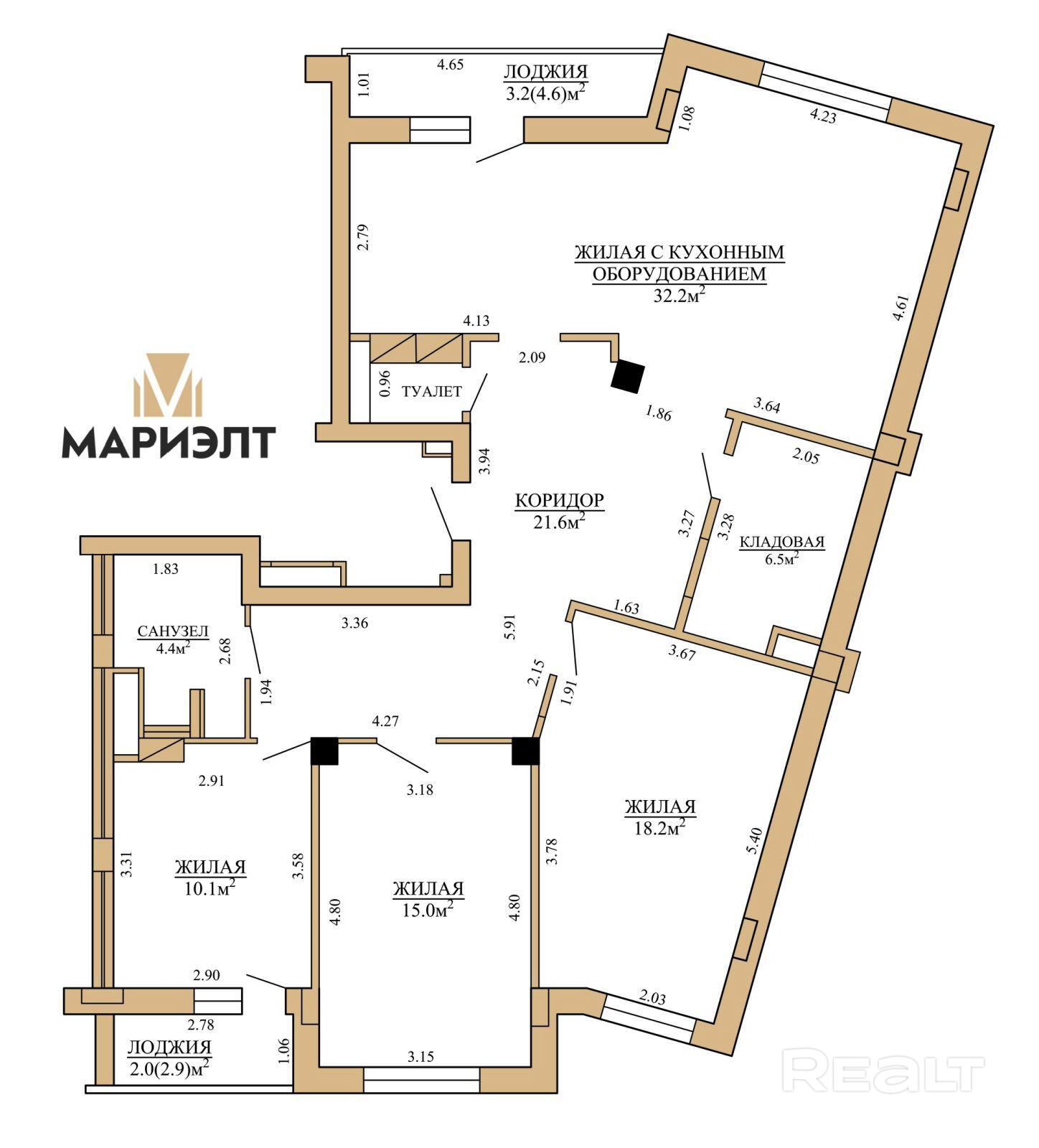 Удобная и практичная планировка! Квартира с четырьмя раздельными комнатами. Площадь - 114,5 кв.м. Сделано удобное зонирование квартиры. Три отдельные комнаты и гостиная с кухней. Два санузла. Большая прихожая и гардеробная/кладовка. Дополнительно есть место для хранения в общем коридоре, свой тамбур. Две лоджии; одна из лоджий (4,6 кв.м.) на кухне - удобно и практично.