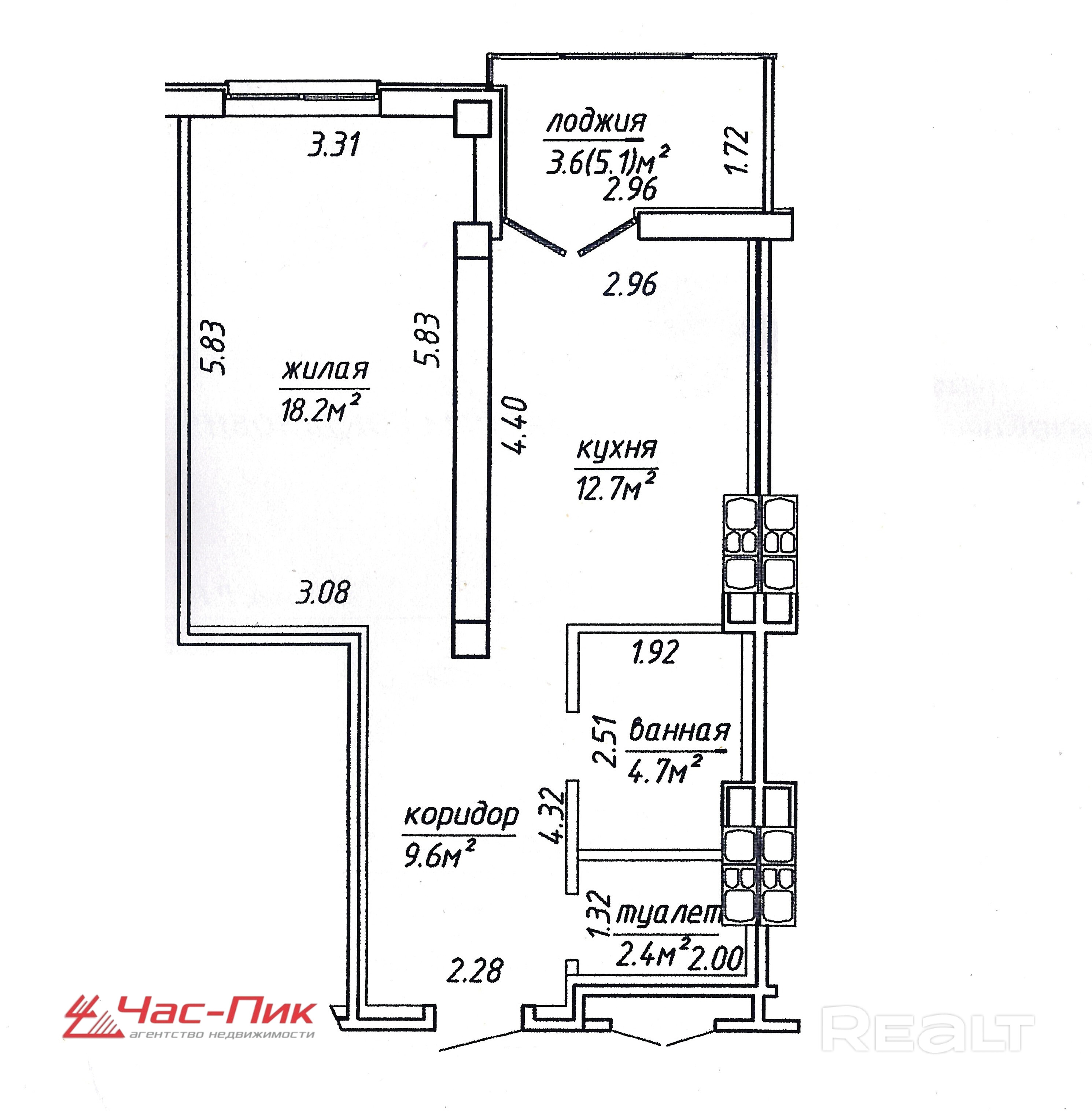 - площадь квартиры по СНБ – 51,2 мкв.