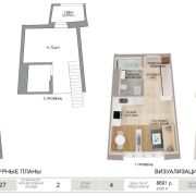 -Антресольный этаж: Каждая квартира имеет антресоль — дополнительный уровень, который идеально подходит для организации кабинета, спальни или мини-спа-зоны. Площадь антресоли не превышает 40% от площади основного помещения.