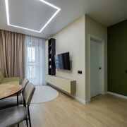 В квартире выполнен современный ремонт из качественных материалов.