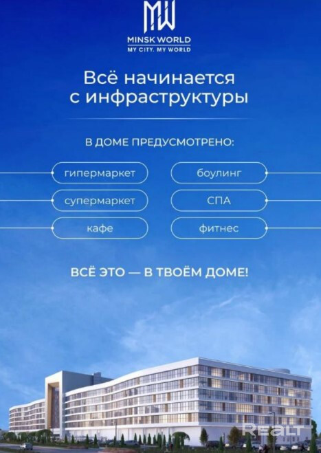В пешей доступности будет вся собственная инфраструктура Minsk World – взрослая и детская поликлиника, медицинский центр, кафе и магазины, парковки, спортивные залы и фитнес-центры.