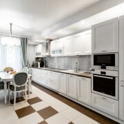 Просторная квартира в современном доме с огороженной территорией и паркингом, 3 квартиры на этаже, зоны хранения в вестибюле, система видеонаблюдения.