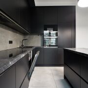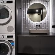 *Добротная техника немецкой сборки: духовой шкаф, индукционная плита, микроволновая печь, стиральная машина и сушильная машина – все Siemens, холодильник Liebherr, посудомоечная машина Bosсh.
