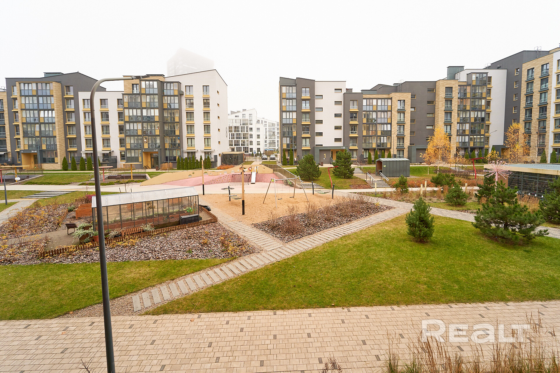*Уютный закрытый двор с современными детскими площадками, настольными играми, тренажерами, зонами отдыха и барбекю. Видеонаблюдение по периметру дома и в подъездах.