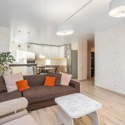 Просторные и светлые комнаты, большая гостиная с кухней, гардеробная, два санузла и возможность аренды подземного парковочного места - все это делает нашу квартиру идеальным местом для вашей семьи.