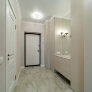 Квартира оснащена встроенным бесшумным холодильником (35dB), вытяжкой, духовкой/микроволновкой, варочной панелью и посудомоечной машиной Electrolux, а также телевизором, стиральной машиной, инверторным кондиционером, бойлером и датчиками протечки.