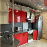 - просторная кухня с маленьким балконом площадью 13 кв.м, где достаточно места для приготовления пищи и семейных ужинов