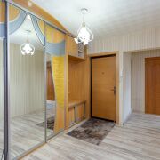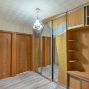 Прихожая и две жилые комнаты обустроены встроенными шкафами.