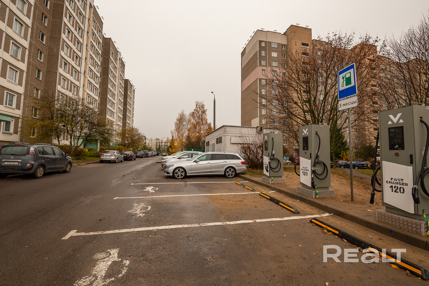 Во дворе дома и рядом с ним достаточное количество парковочных мест, есть места для зарядки электромобилей.