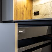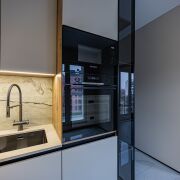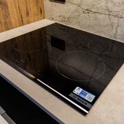∙ Встроенная кухня (ламинированный МДФ, столешница из натурального камня) со всей техникой (все новое, на гарантии): индукционная плита Bosch, вытяжка Bosch, встроенный холодильник Liebherr, встроенная микроволновая печь Bosch, посудомоечная машина Bosch.