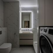 ∙ В санузле итальянская плитка, натуральный камень, сантехника скрытого монтажа премиального класса, стиральная машина Bosch, теплые полы.