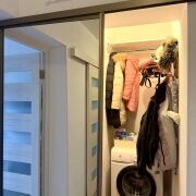 Санузлы раздельные, стиральная машина установлена в кладовой со стороны кухни.