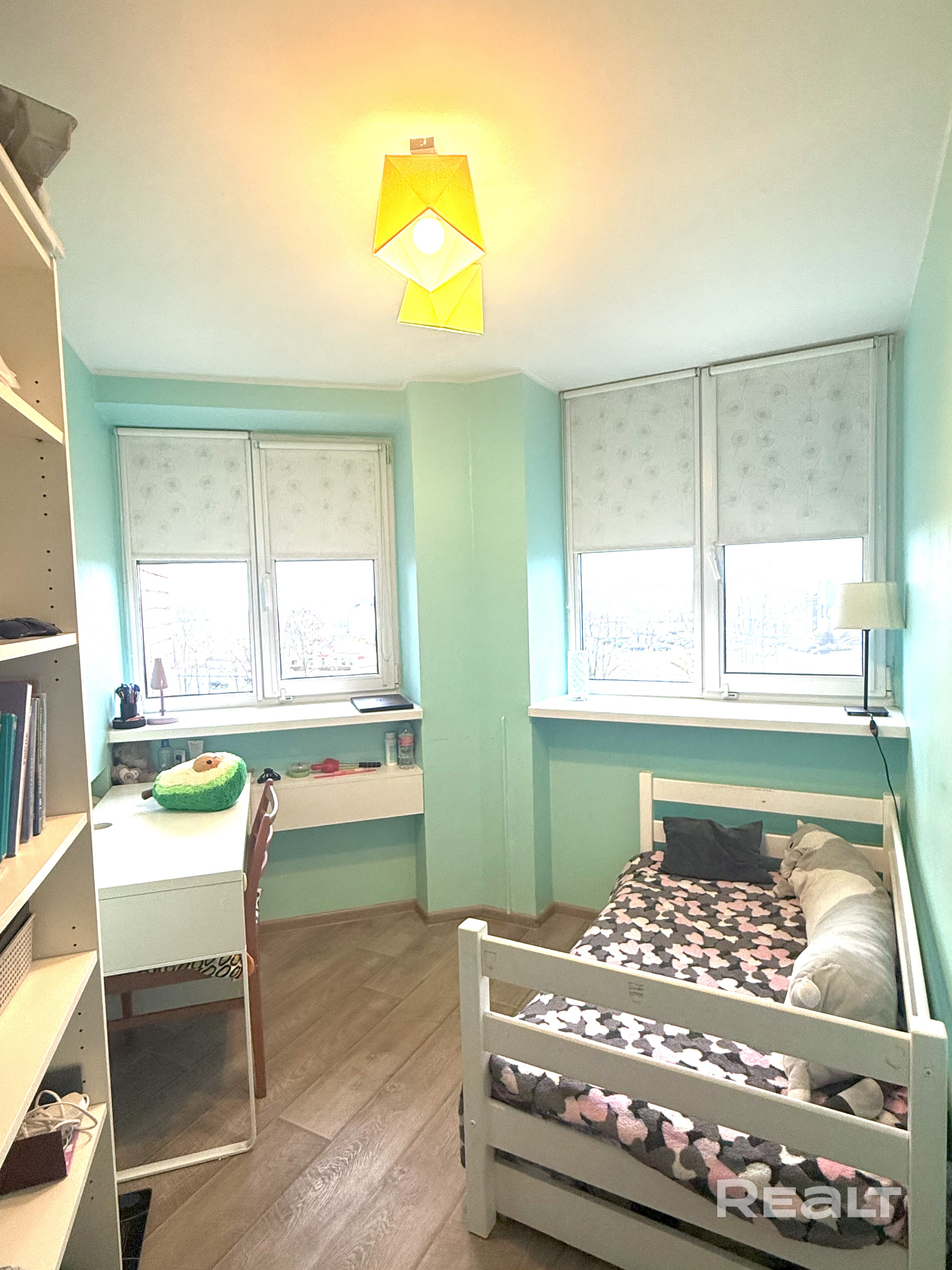 В квартире установлены двухкамерные стеклопакеты с наружными и внутренними роллетами.
