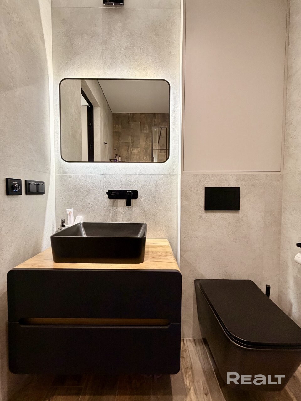· Функциональность и стиль: тумбочка с доводчиками и сенсорное зеркало.