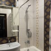 Санузел совмещен, удобный и вместительный. Облицован красивой плиткой.