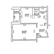 Площадь по СНБ – 44.9 м2, высота потолка – 2.64 м.
