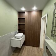 Стоимость квартиры обозначена с готовым ремонтом и мебелью. Квартира с шикарным ремонтом, для отделки использовались только качественные материалы. Полы в жилых комнатах и коридоре выполнены из кварц-винила, подвесные потолки из гипсокартона, стены отделаны декоративной штукатуркой «микроцементом», кухонная столешница из керамогранита.
