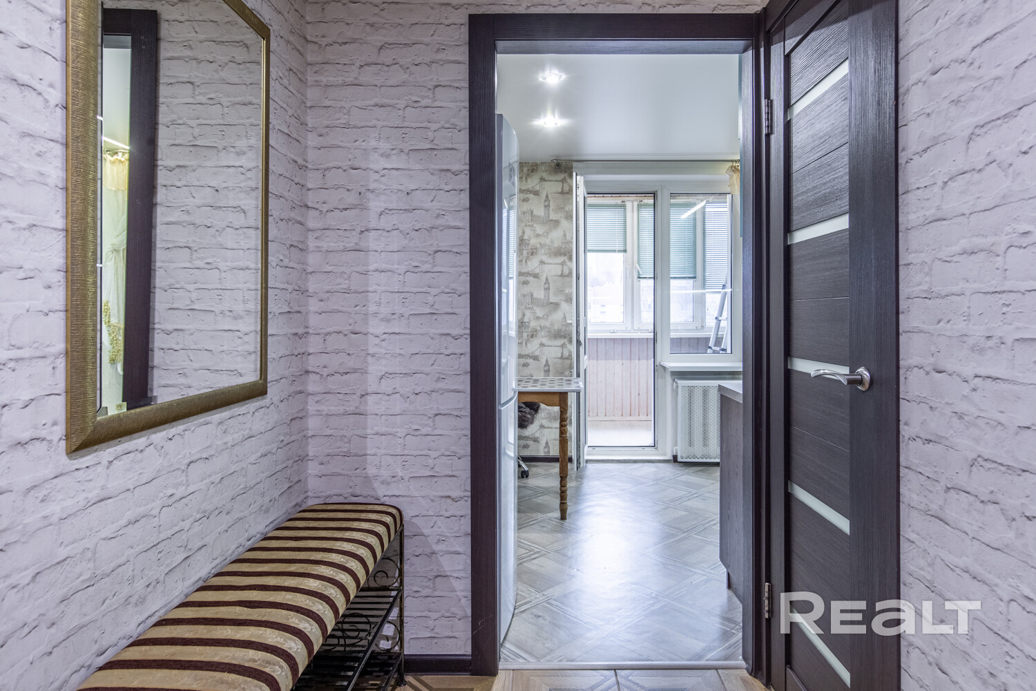 Прихожая и коридор: площадью 15.9м2. Установлена входная металлическая дверь. Пространство позволяет организовать ещё одну зону для хранения вещей. Уютная прихожая зона, на полу плитка.