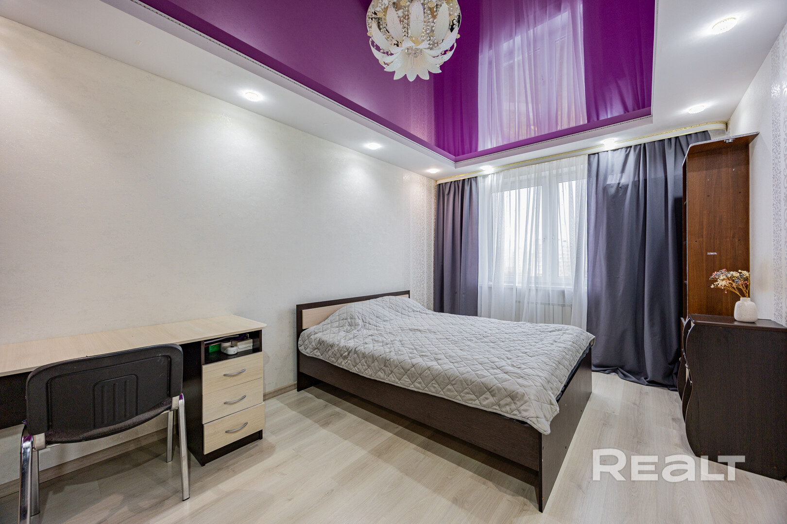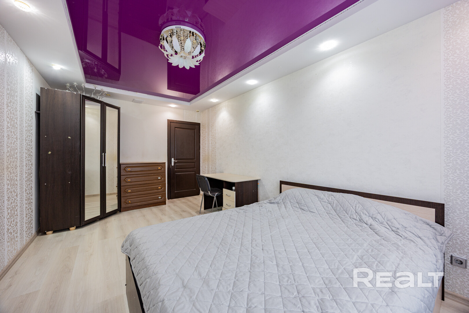 ∙ На полу ламинат, стены оклеены обоями, натяжные потолки.