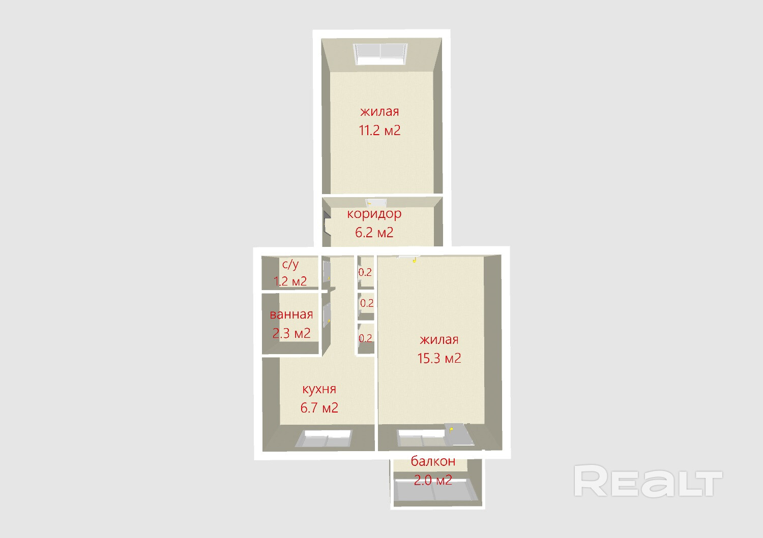 2 раздельные комнаты, расположены на разные стороны дома 11,2м2+15,3м2.