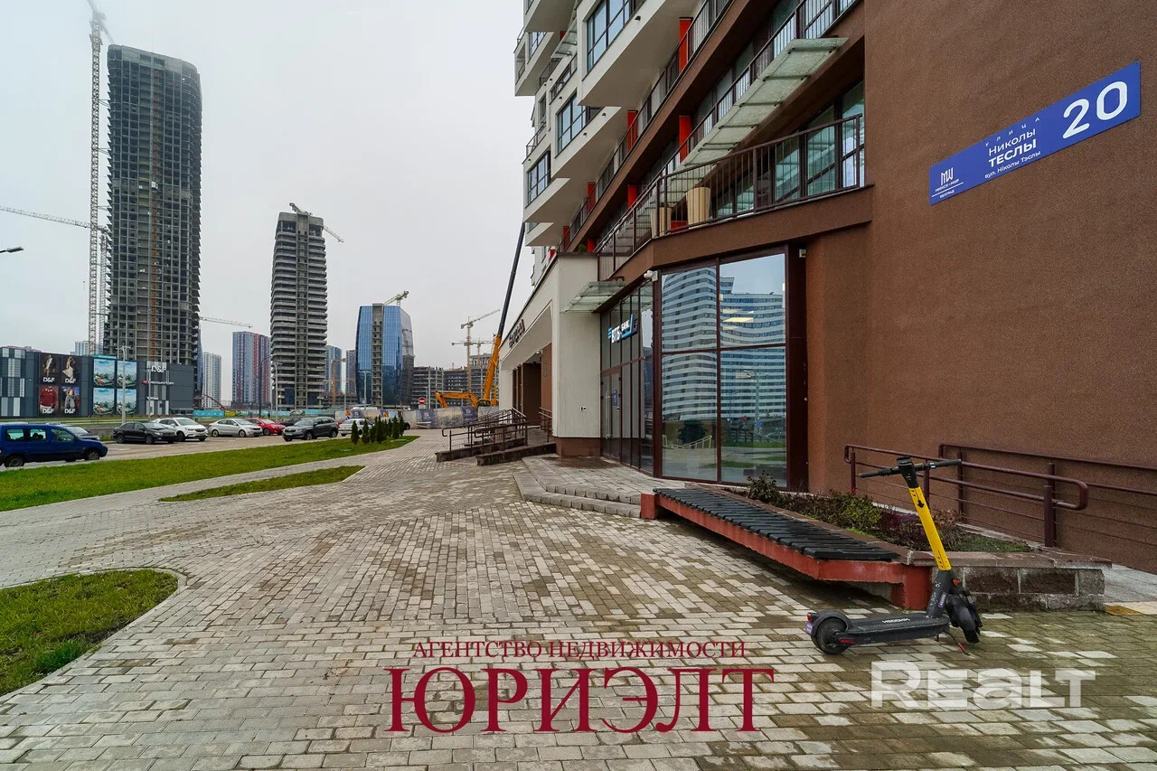 Продается видовая 3-ех комнатная квартира евроформата 56.3 м2 в доме Белград, ЖК Минск Мир. Вид на Волну Эмирейтес. Панорамное оконное остекление в пол на всю стену. Квартира без отделки. Метро - прямо у входа.
