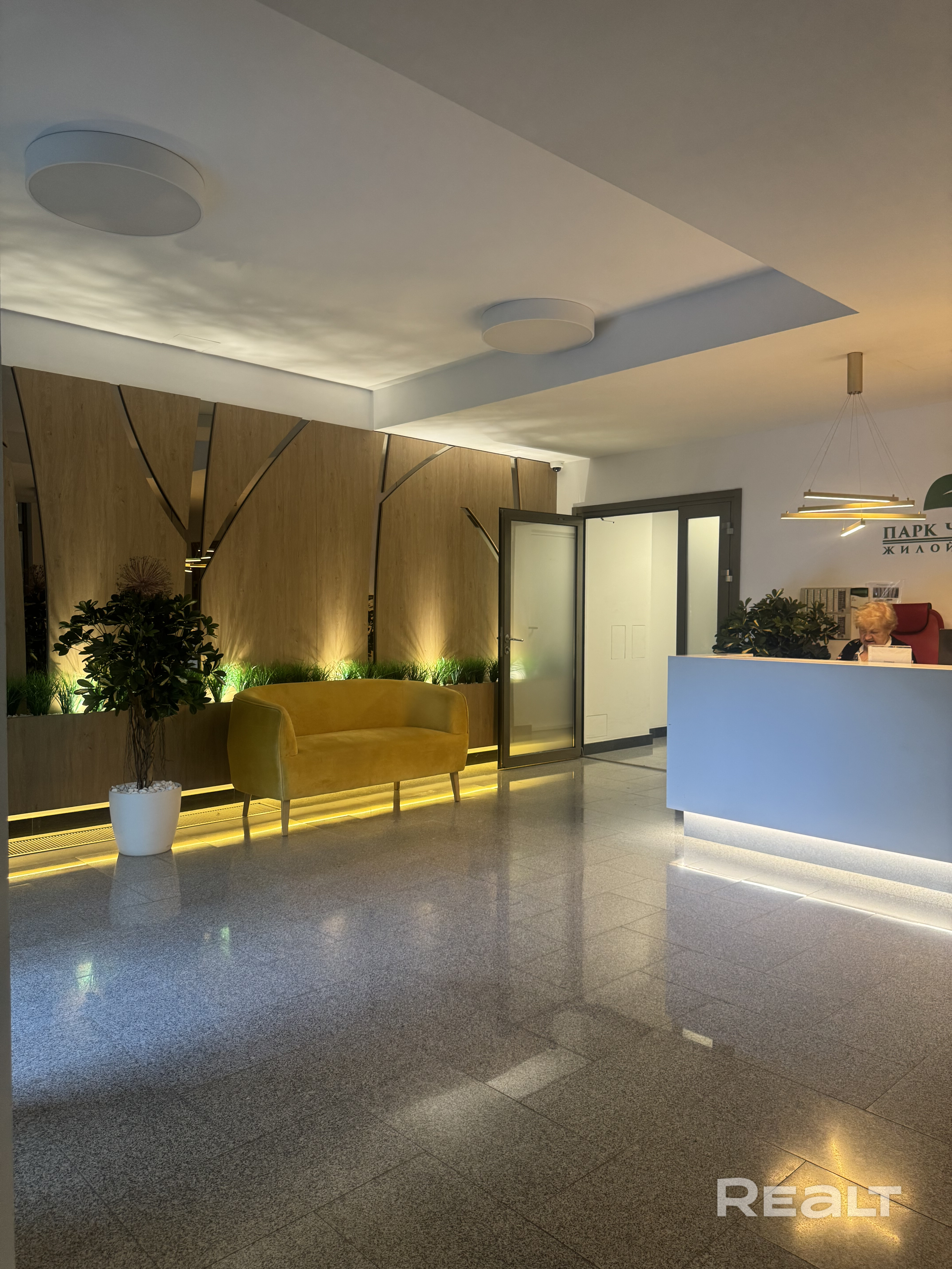 Дом находится в центре Минска с выходом в один из красивейших парков города. Дом имеет необычную архитектуру: на первом этаже паркинг, на втором просторная парадная, консьерж. В доме 4 отдельных входа: один с паркинга, 2 входа со стилобата, а также есть лифт для людей с ограничеными возможностями. На уровне второго этажа находится стилобат с выходом в собственную придомовую территорию и детскую площадку, откуда открываются вид на Парк Челюскинцев и детскую железную дорогу Лифты в доме OTIS.