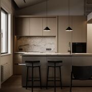· Просторная планировка: Общая площадь 64 кв. м по СНБ включает одну отдельную комнату, светлую кухню-гостиную 24,9 кв. м, ванную и два санузла, просторный балкон с установленной маркизой.