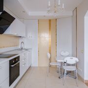 Из прихожей 15.2 кв.м. пространство плавно раскрывается в светлую кухню-гостиную с TV зоной площадью 33,3 кв.м., как центр притяжения где можно и писать картины, и принимать гостей, и просто быть.