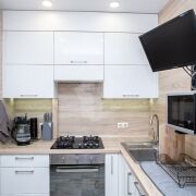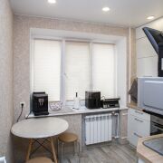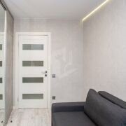 Полностью заменена вся электрика и сантехника. В комнате установлен кондиционер LG. Полы в коридоре и на кухне – плитка, духовой шкаф Ariston, варочная газовая панель Maunfeld, холодильник JG, кухня на доводчиках Blum. В санузле плитка, вся сантехника Ledeme, стиральная машина Electrolux.