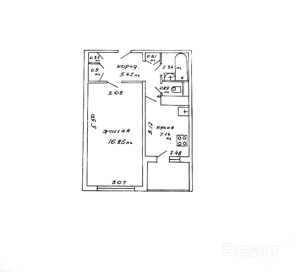 16.85 м²