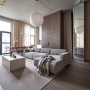 Эта 120-метровая резиденция в «Олимпик Парке» — именно такое пространство: не просто квадратные метры, а тщательно выстроенная композиция света, материалов и форм. Здесь всё — от пропорций до прикосновений — продумано до совершенства.