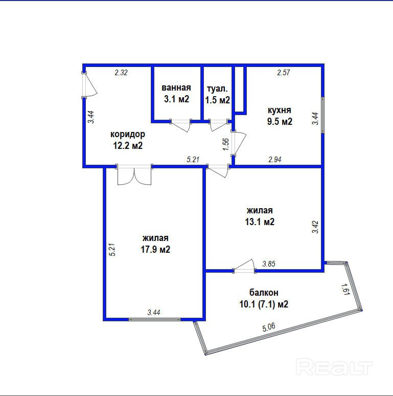 - комнаты: 17,9 кв. м., 13,1 кв. м;
