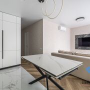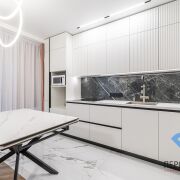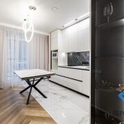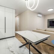 В ванной и туалете установлены вентиляция принудительная Awenta . Стол кухонный матовый керамогранит с металлическим основанием. С функцией расширение площадки. Посудомоечная машина Бош с сушкой Zeolith.