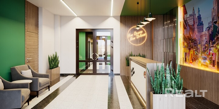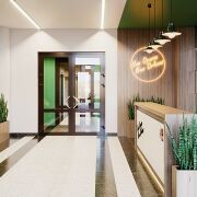 На первом этаже располагается лобби с уникальным дизайном и место для консьержа.
