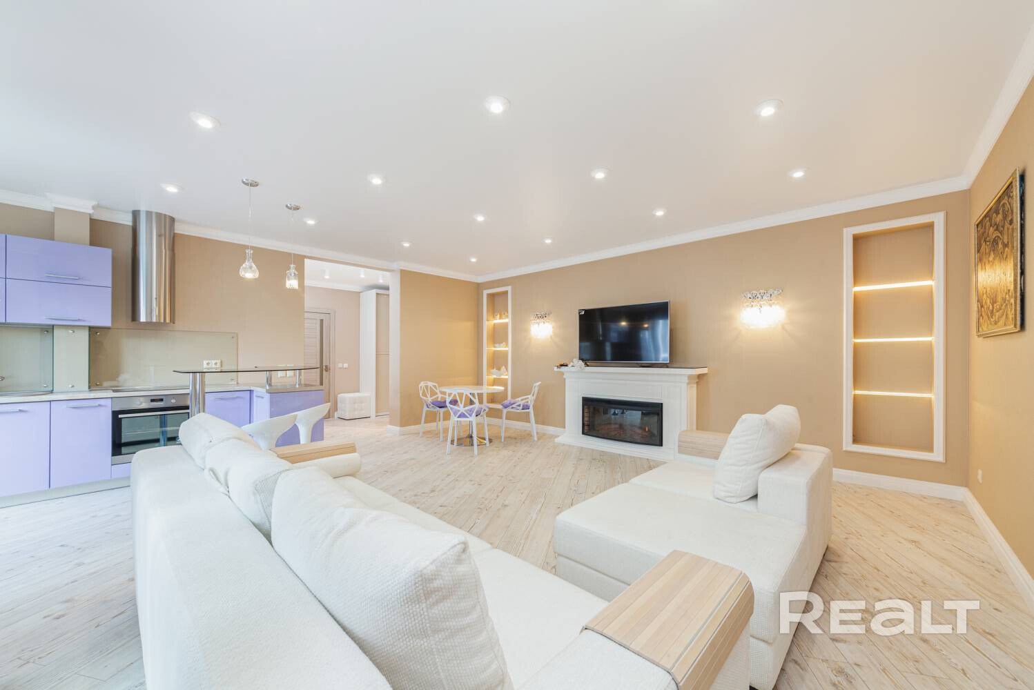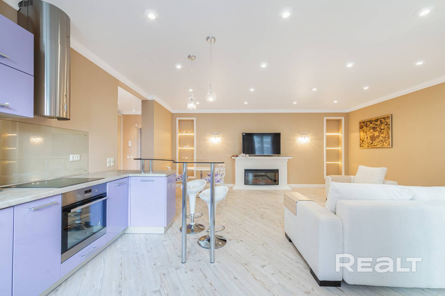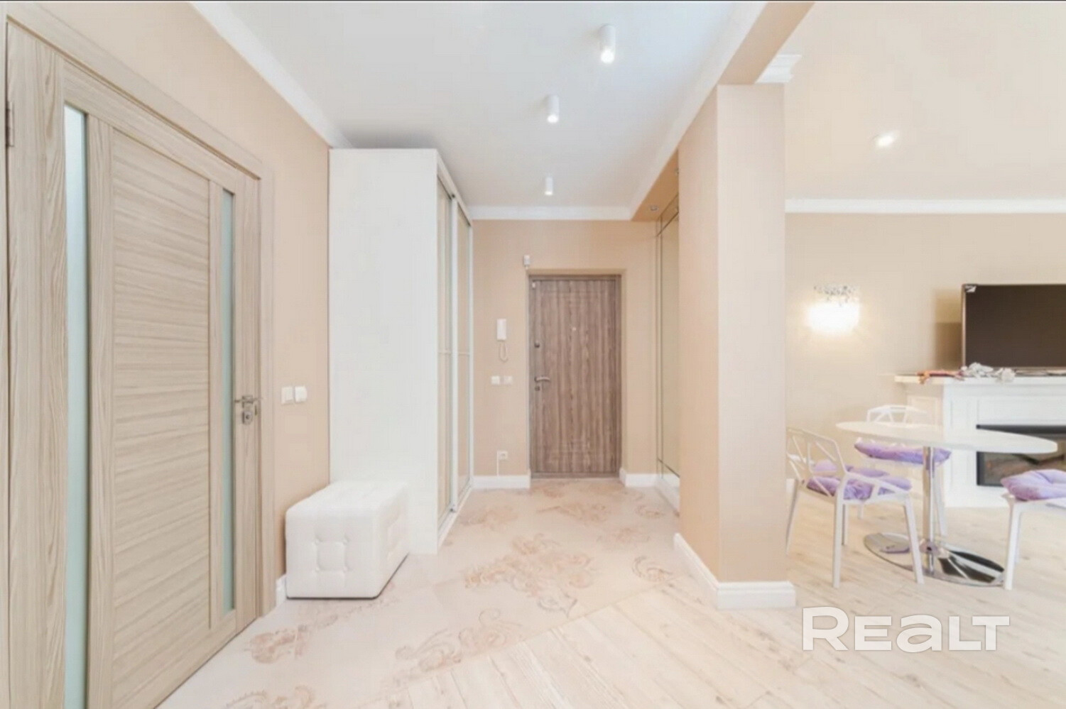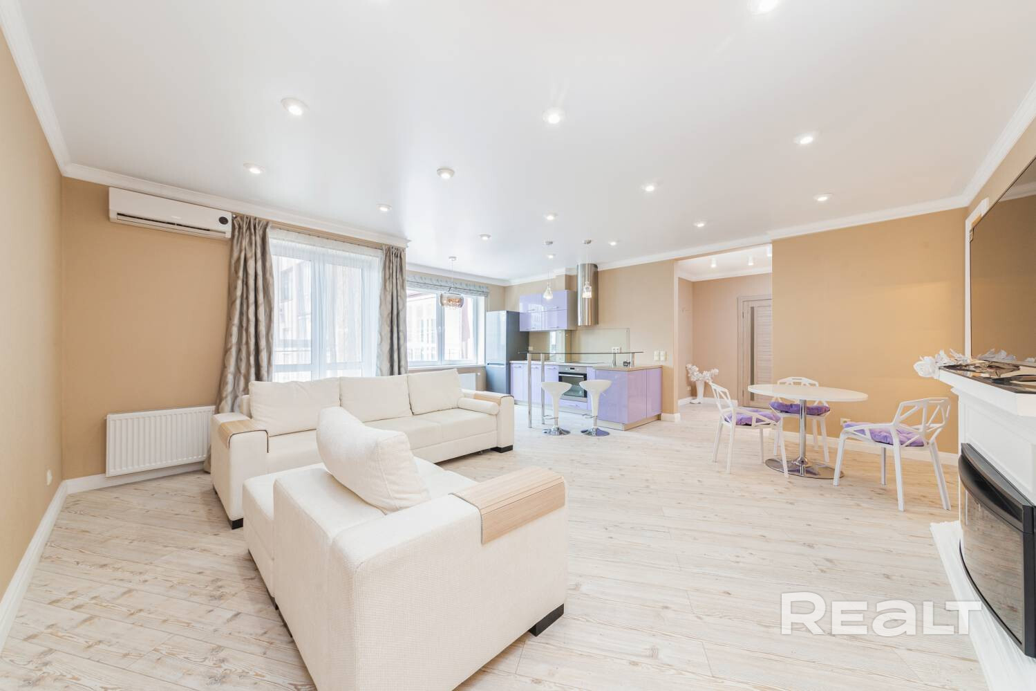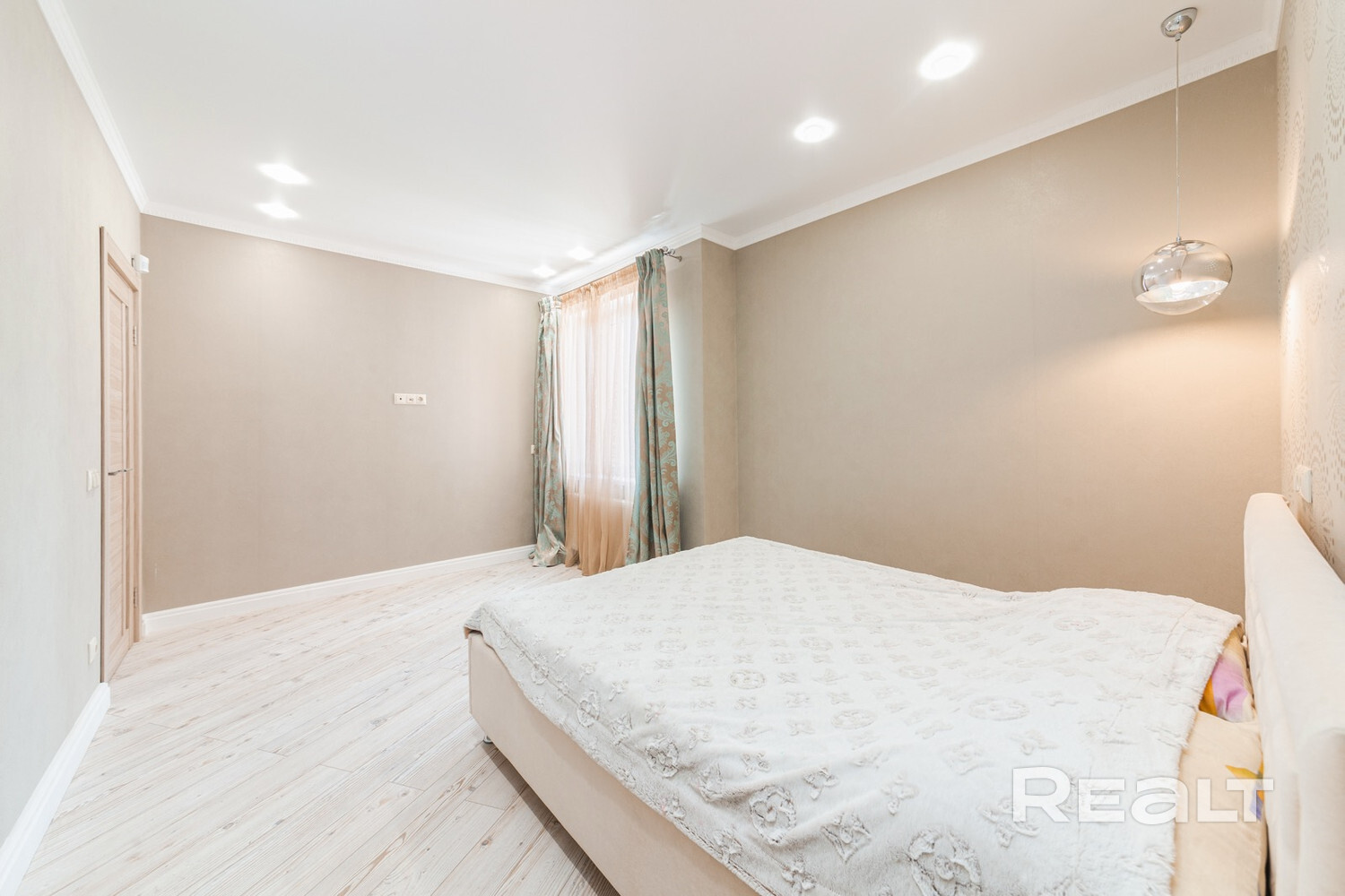 АГЕНТАМ БЕЗ ПОКУПАТЕЛЯ НЕ ЗВОНИТЬ! Большая 2-комнатная квартира с ОТЛИЧНЫМ полным ремонтом по эксклюзивному дизайн-проекту и всей необходимой мебелью и техникой на ул. Мстиславца 20. Отличный 9-й этаж 11-этажного каркасно-блочного дома 2013 года постройки. КВАРТИРА ГОТОВА К СДАЧЕ В АРЕНДУ. Общая площадь – 76,9 м2. Просторная гостиная с обеденной зоной и кухонным оборудованием и техникой. Большая спальня с гардеробной. Совмещённый санузел. Лоджия с остеклением в пол с видом во двор (южн.сторона)