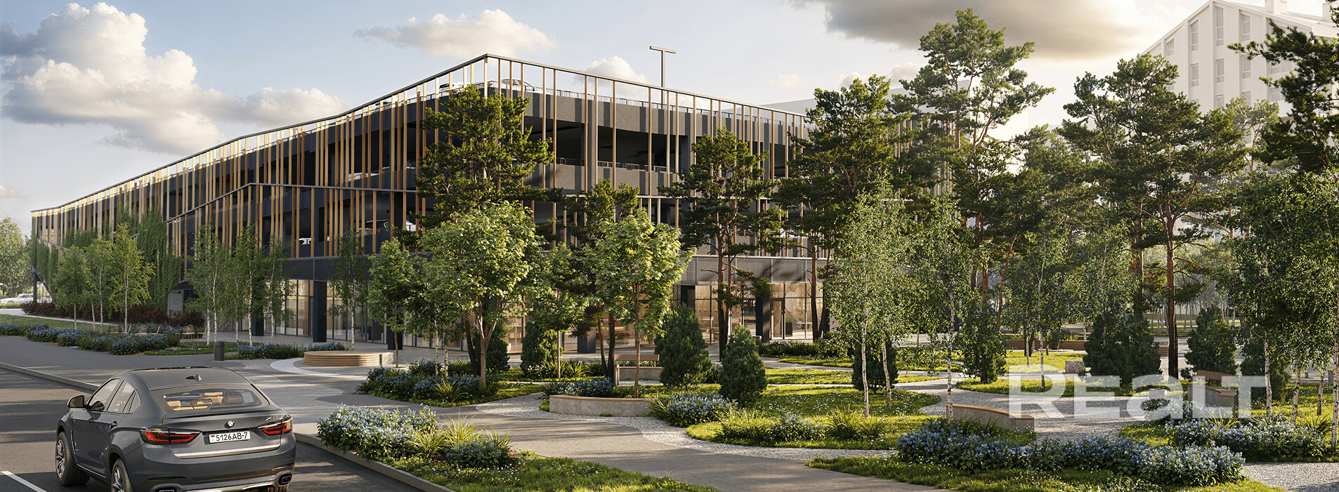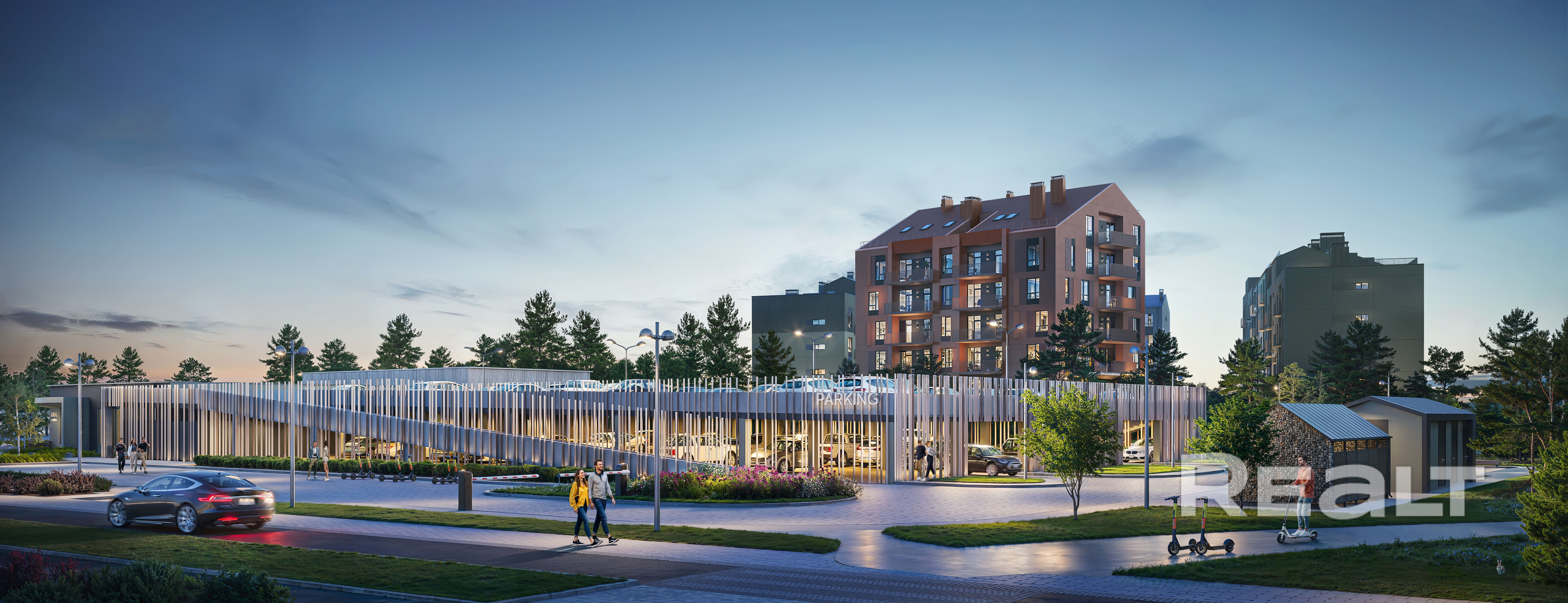 - Крытый велобокс для хранения велосипедов.