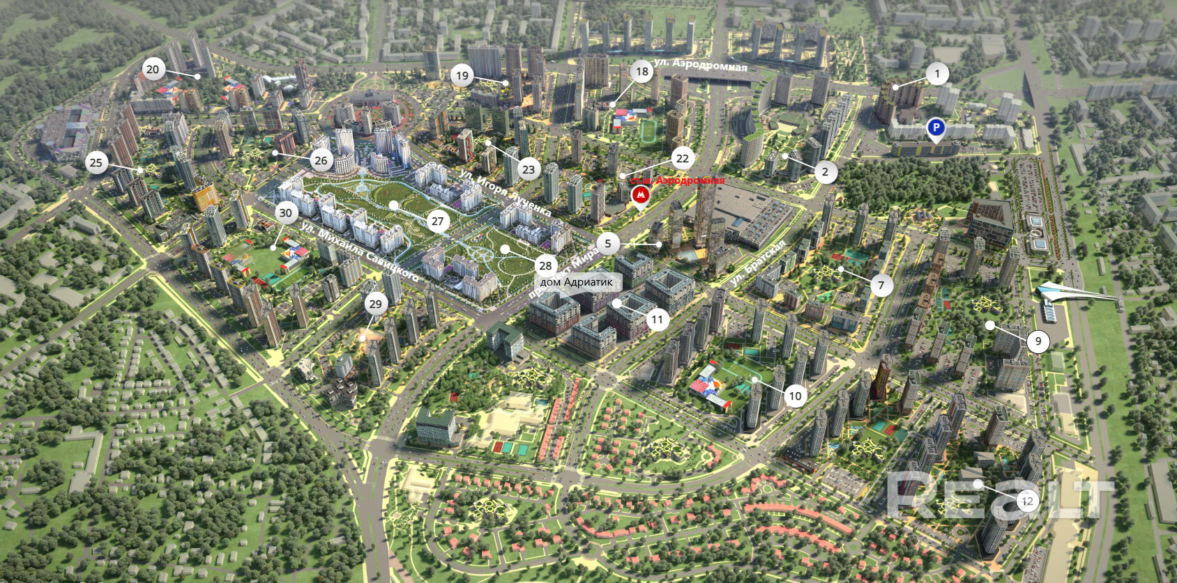 В шаговой доступности ст.м. «Аэродромная». Рядом парк с велодорожками, международный финансовый центр и ТЦ АВИА МОЛЛ.