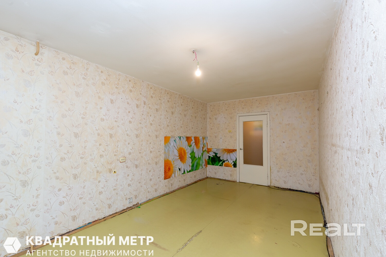 Продаётся 1 комнатная квартира под ремонт с вашей фантазией в Минске – Фрунзенский район, ул. Лещинского, дом 15, на 4 этаже 9 ти-этажного панельного дома, не угловая по расположению дома 1987 года постройки. До метро Кунцевщина - 5 минут пешком.