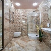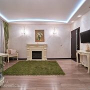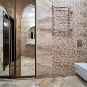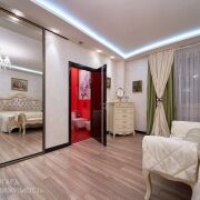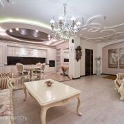 В отделке и наполнении квартиры использовались высококачественные современные материалы, техника, оборудование. Ремонт, мебель, техника в отличном состоянии. Встроенная кухня из массива (столешница и фартук камень) оборудована духовым шкафом, холодильником, посудомоечной машиной, варочной поверхностью, вытяжкой, фильтром для воды и множеством мест хранения. Полы ламинат 33 класс и итальянская плитка (все полы в зоне плитки с электрическим подогревом). Стены – декоративная штукатурка. В санузлах итальянская плитка, сантехника, смесители немецкие. Межкомнатные двери массив. Большинство мебели из массива индивидуально под заказ. Свет итальянский. Шторы из натурального шелка (Италия) под заказ. Большой встроенный шкаф в коридоре, вместительный гардероб в спальне с встроенной системой хранения. Лоджия застеклена, утеплена и облагорожена.