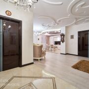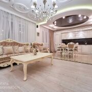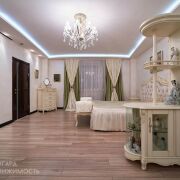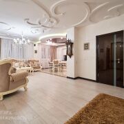 Квартира изначально имела свободную планировку. Действующая планировка, а также весь ремонт, мебель и техника, подбирались в один общий стиль в соответствии с дизайн-проектом. Все продумывалось до мелочей. Как итог вы имеете просторную кухню-гостиную и большую мастер-спальню с собственным с/у и гардеробной. В целом размеры всех помещений в квартире действительно впечатляют. Высота потолков – 2.73 метра.