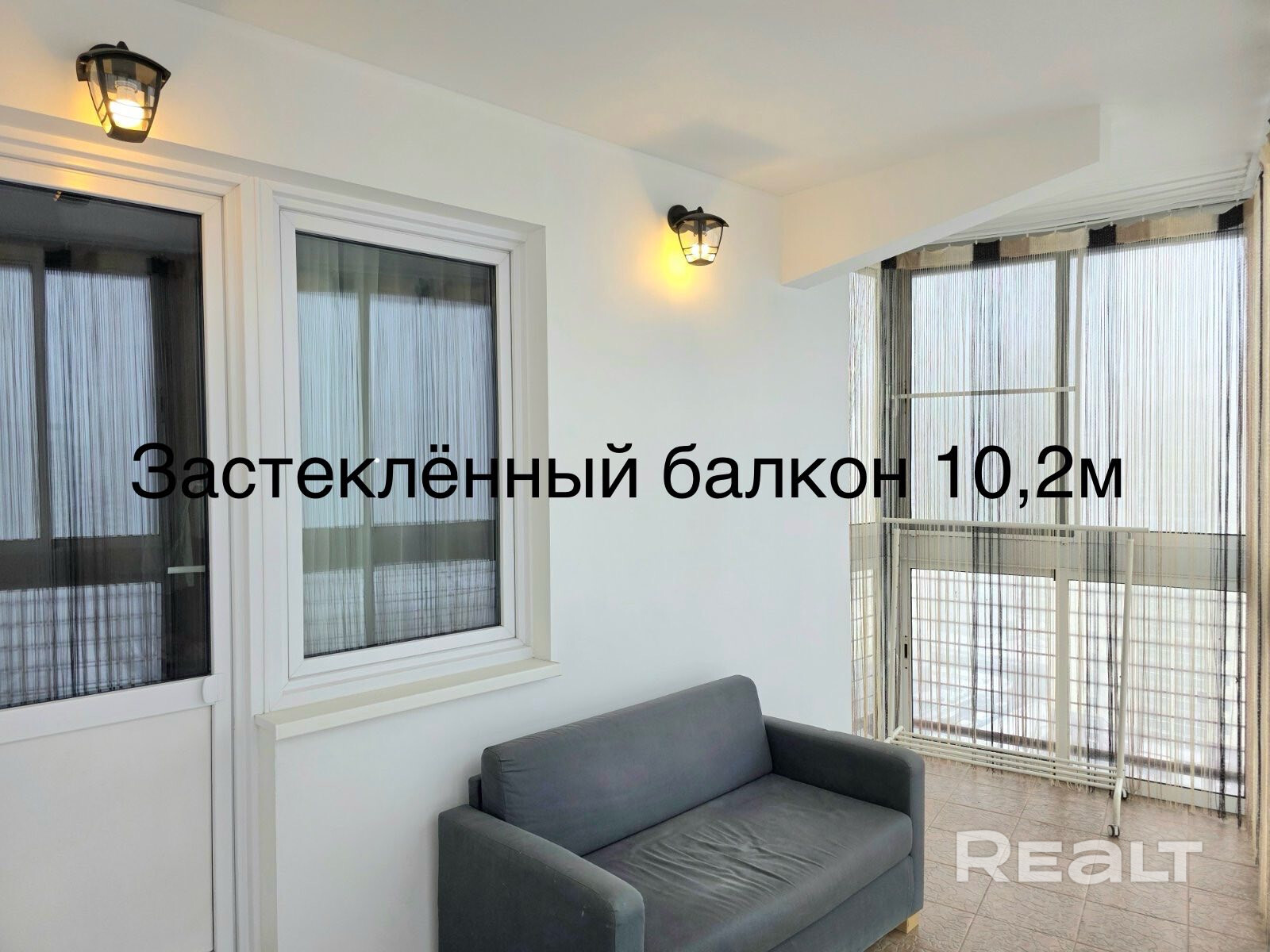 Второй балкон застеклен, 10,2 м2 - практически третья комната для релакса с панорамным видом на город. Третий маленький балкон не застеклен.