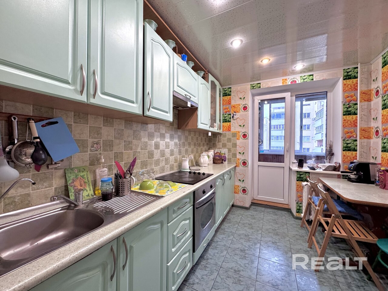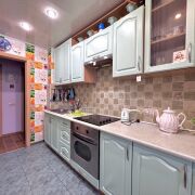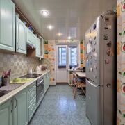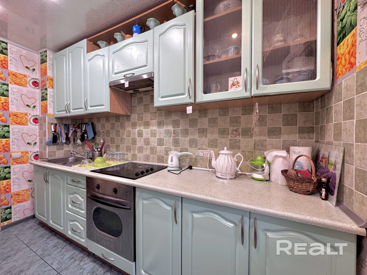 Встроенная кухня с техникой, плитка на полу