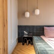 Две изолированные комнаты -  спальня и детская. 3 просторных санузла, 2 вместительные гардеробные. На полу французский ламинат. Итальянская плитка и сантехника. Квартира полностью укомплектована новой импортной мебелью и бытовой техникой Bosch-посудомоечная машина ,холодильник ,духовой шкаф, микроволновая печь, бойлер ,очистка воды, стиральная и сушильная машины, телевизоры, кондиционеры.
