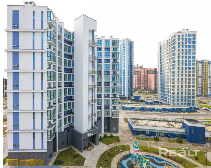 -Детские площадки: В непосредственной близости от дома находятся яркие, безопасные детские площадки — одна из визитных карточек многофункционального комплекса «Минск-Мир».