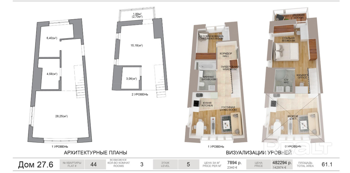 -Антресольный этаж: Каждая квартира имеет антресоль — дополнительный уровень, который идеально подходит для организации кабинета, спальни или мини-спа-зоны. Площадь антресоли не превышает 40% от площади основного помещения.